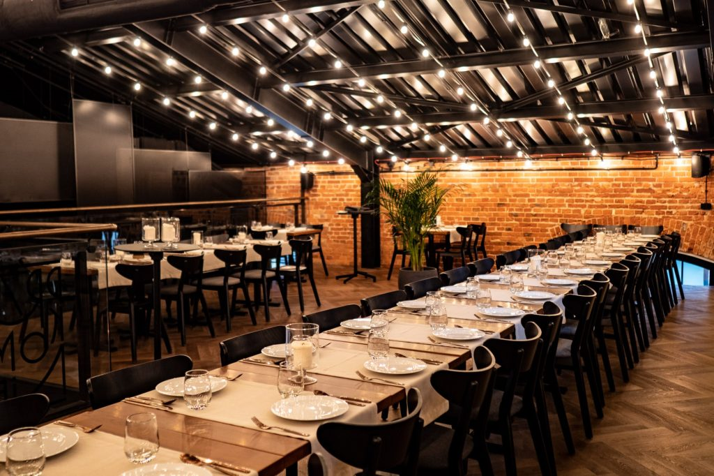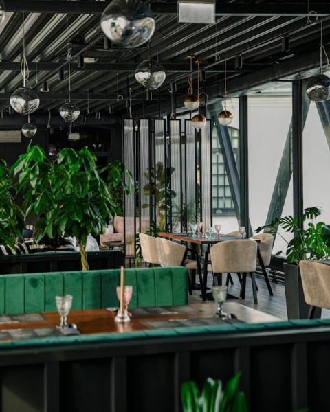 W górnej, przeszklonej przestrzeni restauracji Three Chimneys (ul. Fabryczna 17, Łódź) znajdziecie atmosferę gotową na imprezę — świetnie sprawdzi się dla grupy do około 45 osób, z możliwością wynajęcia antresoli na wyłączność. Lokal oferuje kuchnię sezonową i międzynarodową w nowoczesnym wydaniu, w industrialnym wnętrzu z dużymi oknami i widokiem na Ogrody Geyera. To idealne miejsce, gdy szukasz wigilii z lekkim imprezowym klimatem, świetnym designem przestrzeni i niebanalnym widokiem.